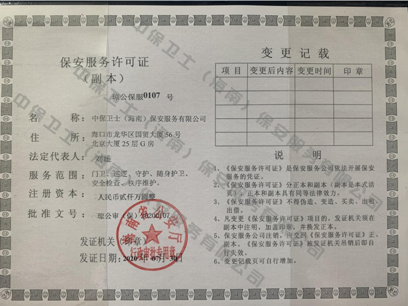 开云手机在线登陆入口-开云(中国)是经海南省公安厅批准,依法持有《保安服务许可证》,提供保安服务、门卫、巡逻、守护、区域秩序维护、随身护卫、安全检查的专业化保安服务公司。
